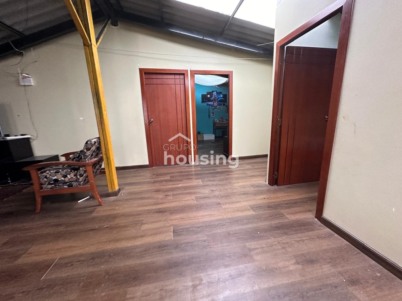 Casa unifamiliar en venta, misma que tiene 1 piso más buhardilla, emplazada en un terreno de ubicación medianero. En la planta baja tenemos sala, comedor, cocina, baño social, dormitorio principal con baño privado, 2 dormitorios que comparten 1 baño completo. En la buhardilla tenemos un área social central y área de juegos, además de 3 dormitorios con baño completo compartido. Cuenta con dos galpones (nave industrial).