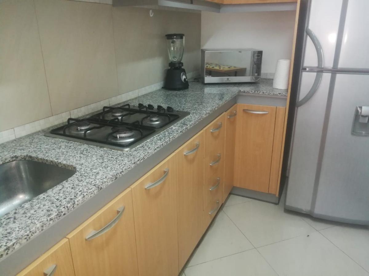 Hermoso departamento ubicado en el Conjunto Parque Real en Quito, Esta completamente amoblado y consta de sala, comedor, cocina independiente, área de lavandería Bodega grande y Parqueadero, se encuentra en el 6to Piso posee gas centralizado, agua caliente ilimitada. El edificio cuenta con circuito cerrado de video vigilancia, guardianía las 24 horas, acceso mediante tarjeta magnética, área de BBQ, Gimnasio, Salones de eventos. Ubicación insuperable en el Centro Norte de UIO.
