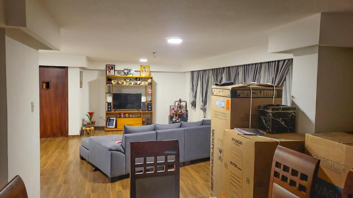 Hermoso y amplio departamento en una excelente ubicación de la ciudad de Quito, cuenta con cerramiento en paredes de bloque de hormigón y portón metálico, consta en la parte externa de 1 parqueadero y 1 garaje. En el interior consta de un hall con muebles empotrados, baño social, mini bodega, habitación 1 con muebles de madera tipo estudio, 1 baño completo compartido, dos habitaciones con sus respectivos closets de madera, 1 habitación master con baño y tina, sala, cocina, comedor en un solo ambiente, patio interno cubierto con lavandería y área de secado, 1 habitación de servicio con baño completo, área de maquinas con calefón y conexiones.